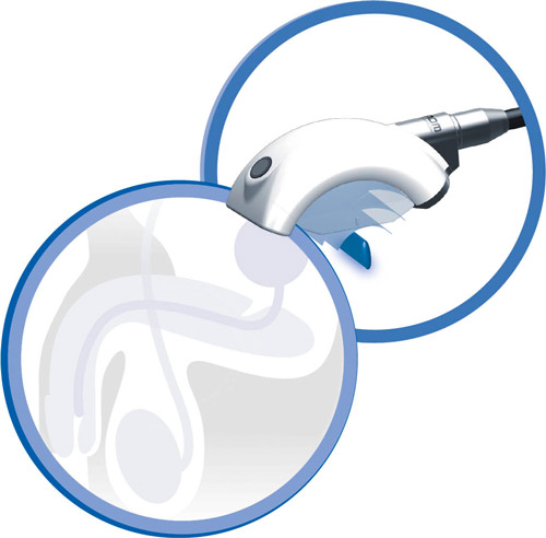 Unsere Ausstattung erlaubt es den gesamten Schwellkörperverlauf schnell und umfassend zu behandeln. Hierzu wird die Therapiequelle im rechten Winkel zu den Schwellkörpern angesetzt und in Längsrichtung entlang des Penis (Corpora cavernosa) und dem Perineum (Crura Penis) geführt. Dies garantiert eine maximale, homogene Energieeinbringung und einen schnellen Behandlungsverlauf.